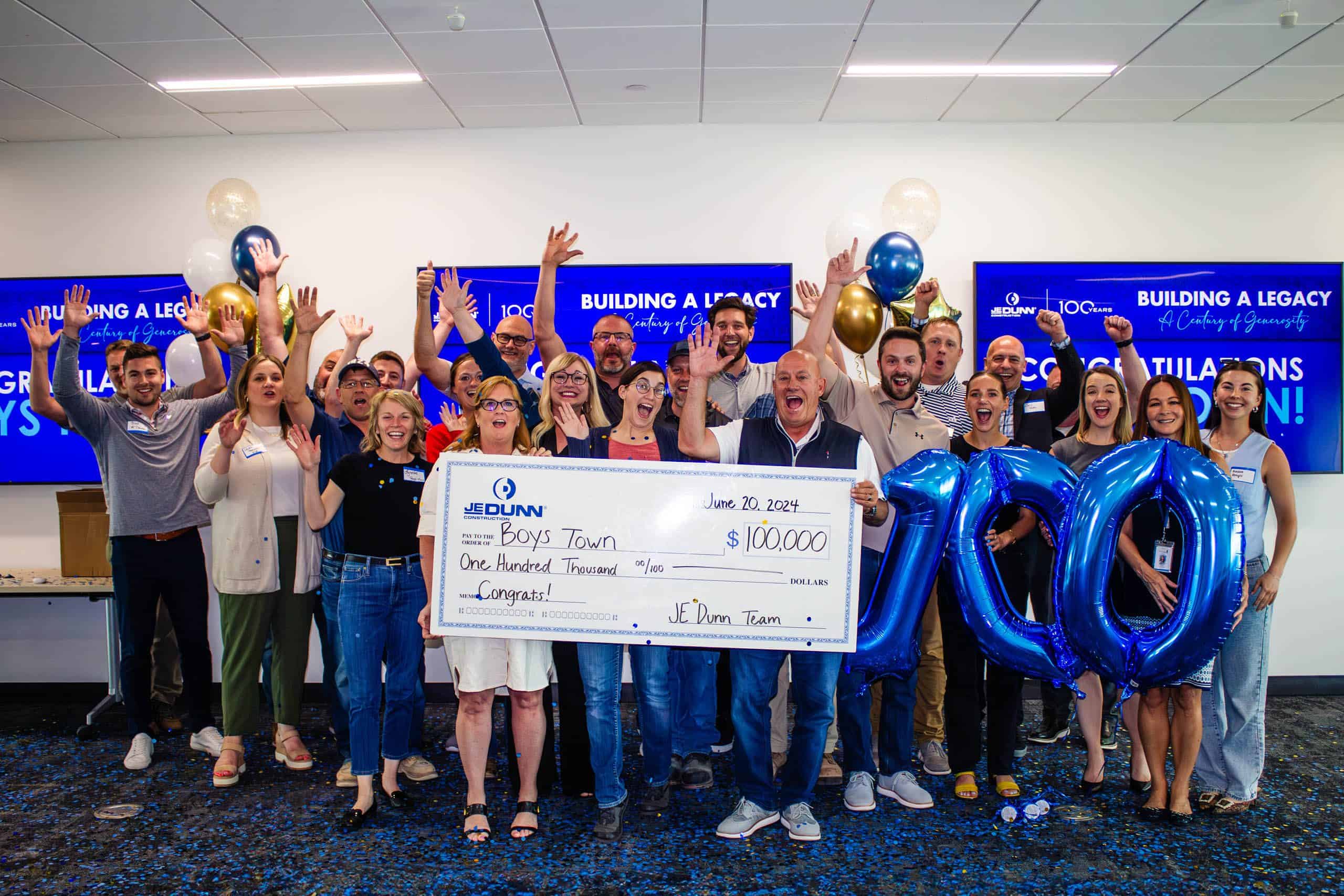 “We are deeply grateful for the incredible partnership we have with JE Dunn,” said Lisa Hukill from Boys Town. “It was a true honor to be a part of JE Dunn’s 100-year celebration of building excellence through the transformative centennial giving campaign. We are especially thankful to the Nebraska JE Dunn team for voting for Boys Town to receive this generous grant.”
