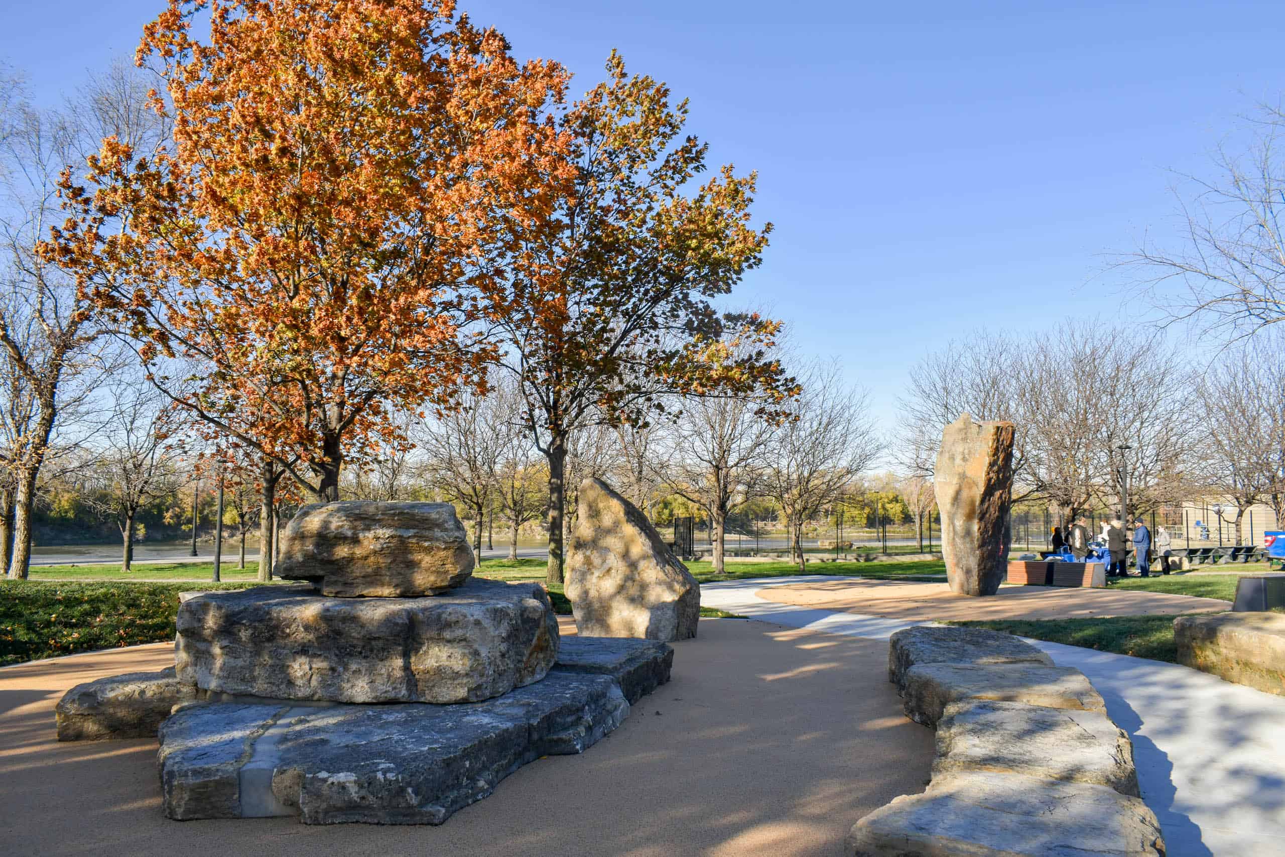 Groundbreakers took the lead in making the project a reality, working with JE Dunn strategic trade partner Blue Hat to lower the 38,000-pound boulder using a 275-ton all-terrain crane, and with JE Dunn’s PreBuild team for custom benches and signage.