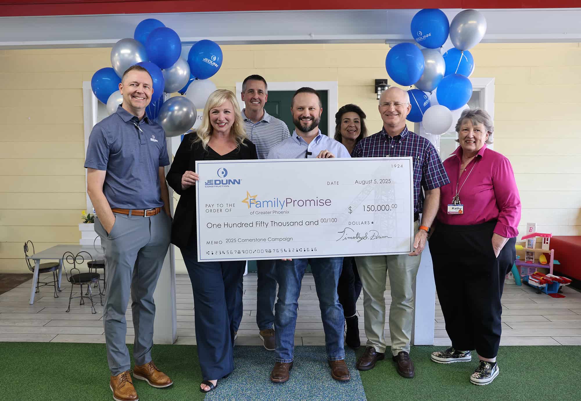Family Promise of Greater Phoenix received a $150,000 grant from JE Dunn Construction on August 5, 2025 to support its Emergency Shelter Program.