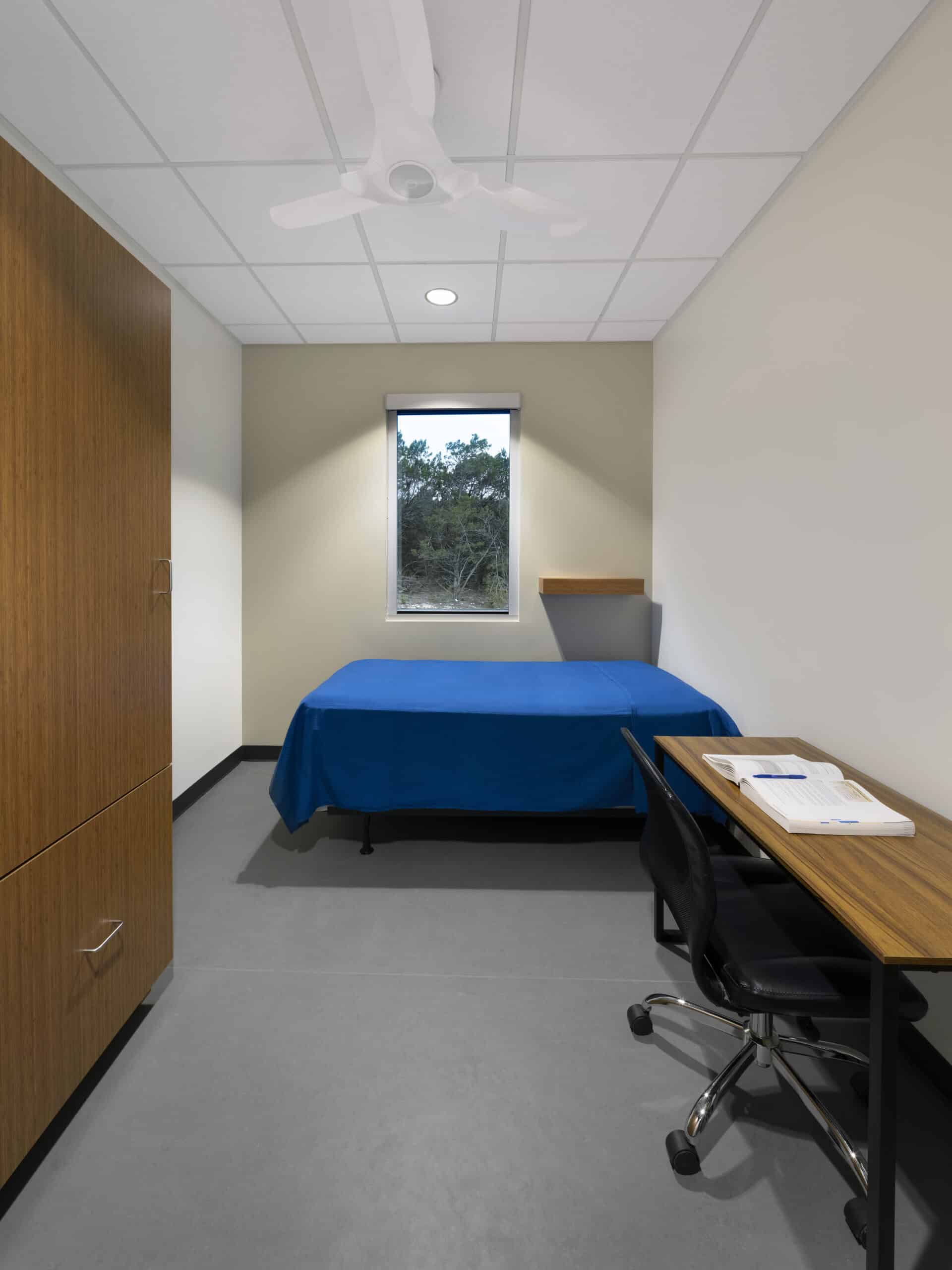 Design included individual dorm rooms and bathrooms for privacy, spacious kitchens, and dedicated rest areas for necessary downtime. Decontamination rooms were provided for medics to clean themselves and their uniforms, preventing the spread of pathogens into living quarters.