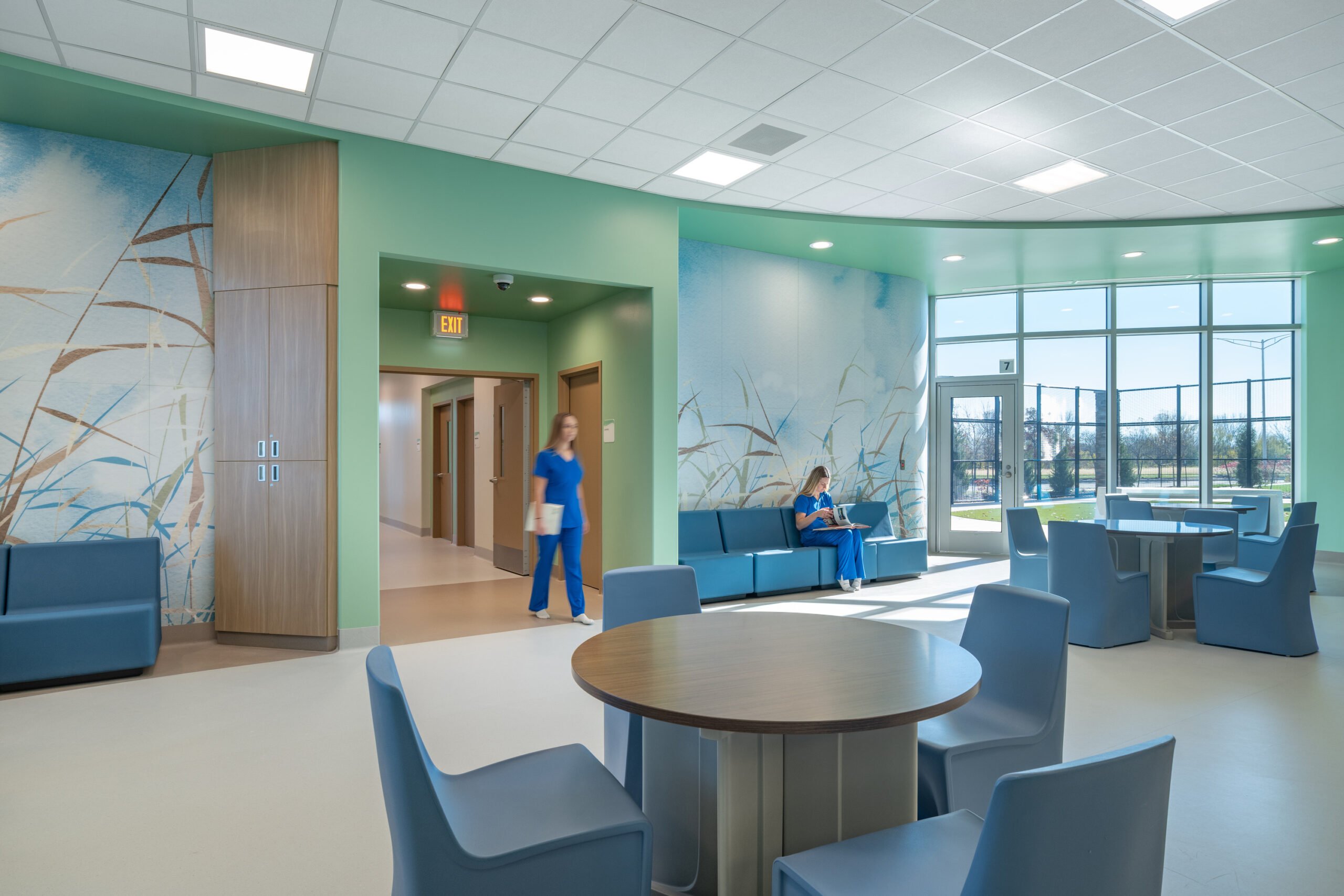 The 58,438-square-foot, 72-bed psychiatric hospital provides both youth and adult inpatient services within a single state-of-the-art facility. By integrating two care environments, 24 private adult rooms and 48 private youth rooms, the CMC hospital ensures patient safety, privacy, and programming tailored to each population.