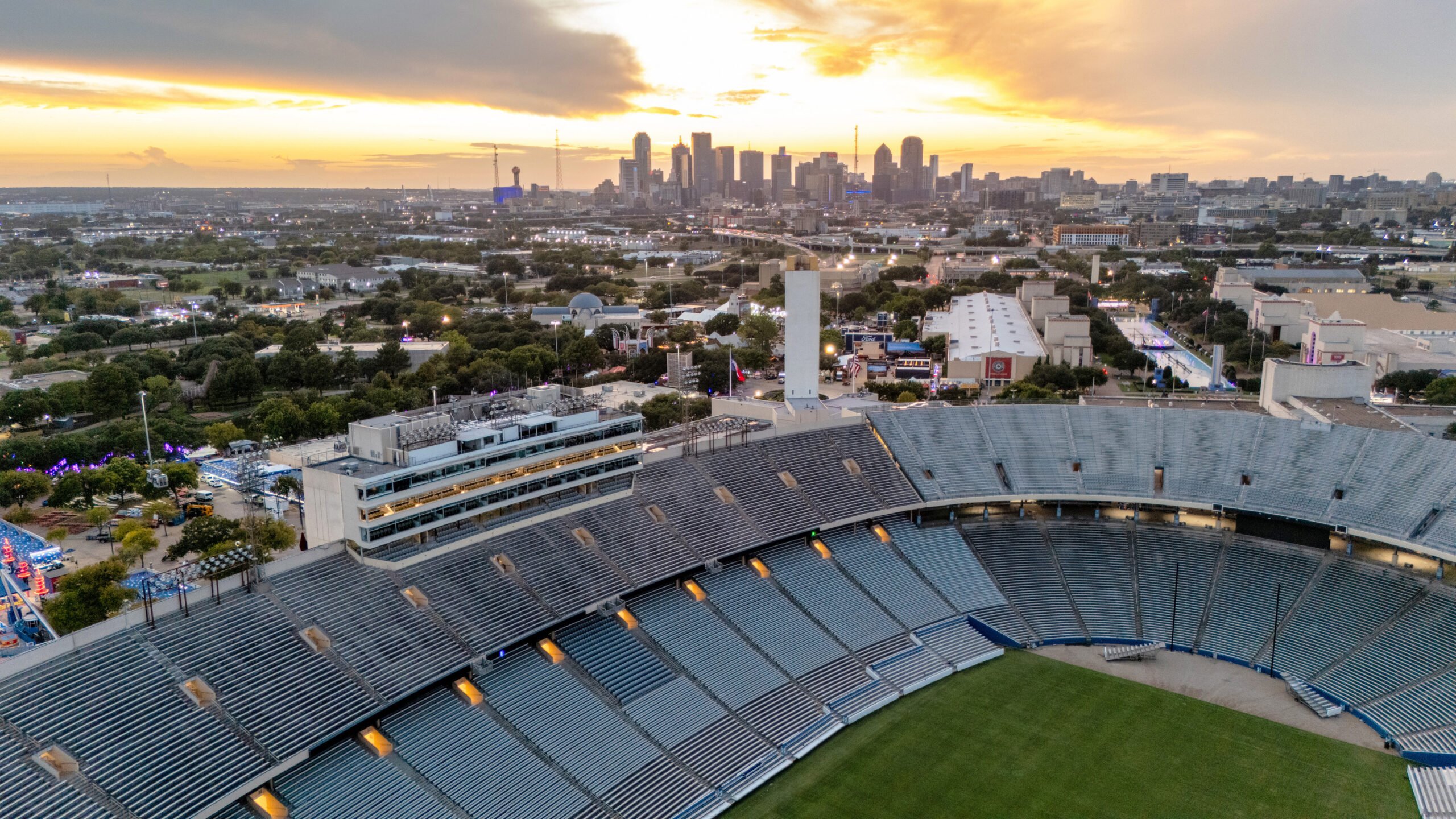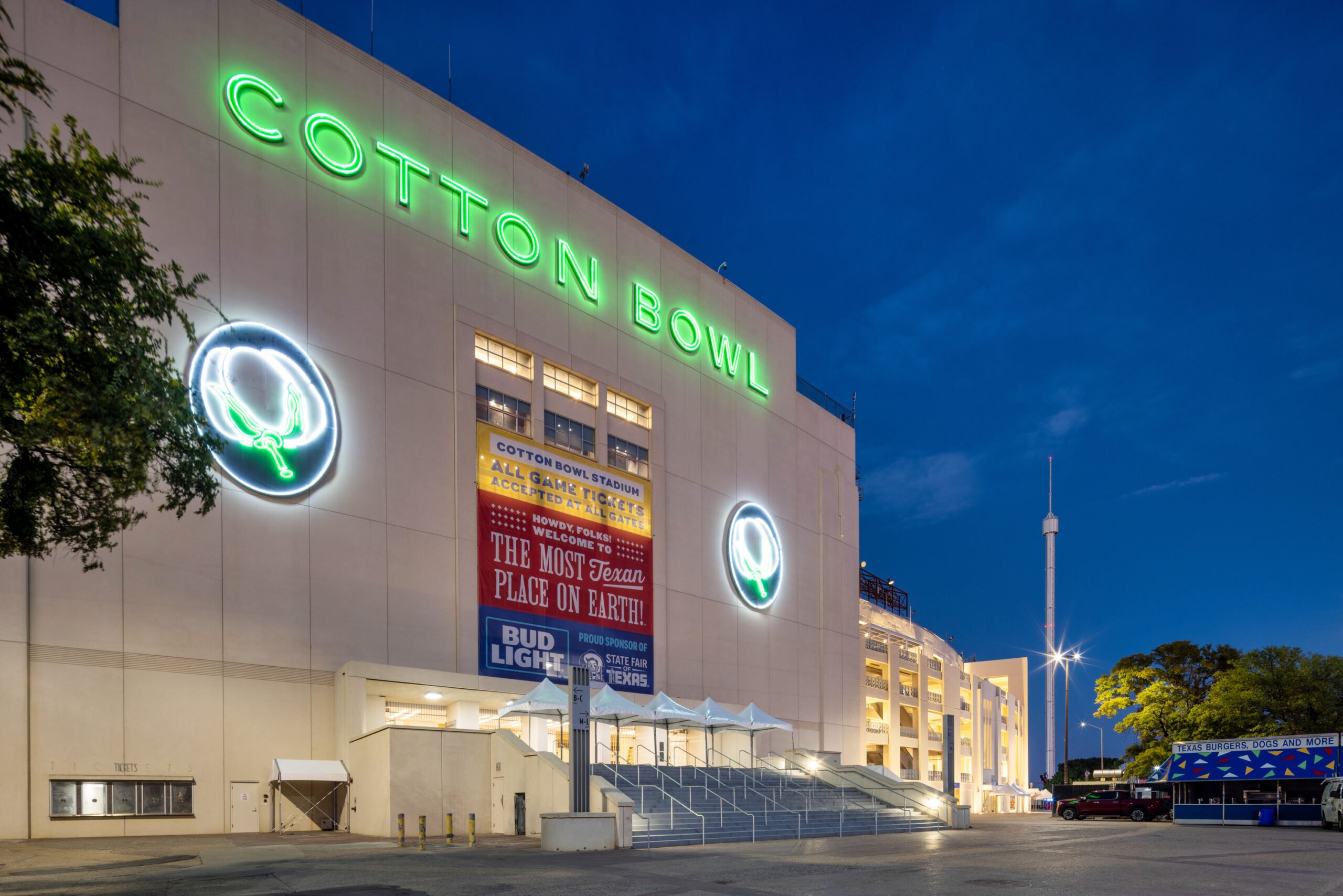 The historic Texas Cotton Bowl is part of Fair Park, a National Historic Landmark located in 80 acres of cotton fields east of Dallas. Fair Park opened in 1886 with what was then called the Dallas State Fair and Exposition. Eventually, Fair Park would come to host the annual Texas State Fair and build a 45,507-seat stadium in 1930 that would later be dubbed the Texas Cotton Bowl.