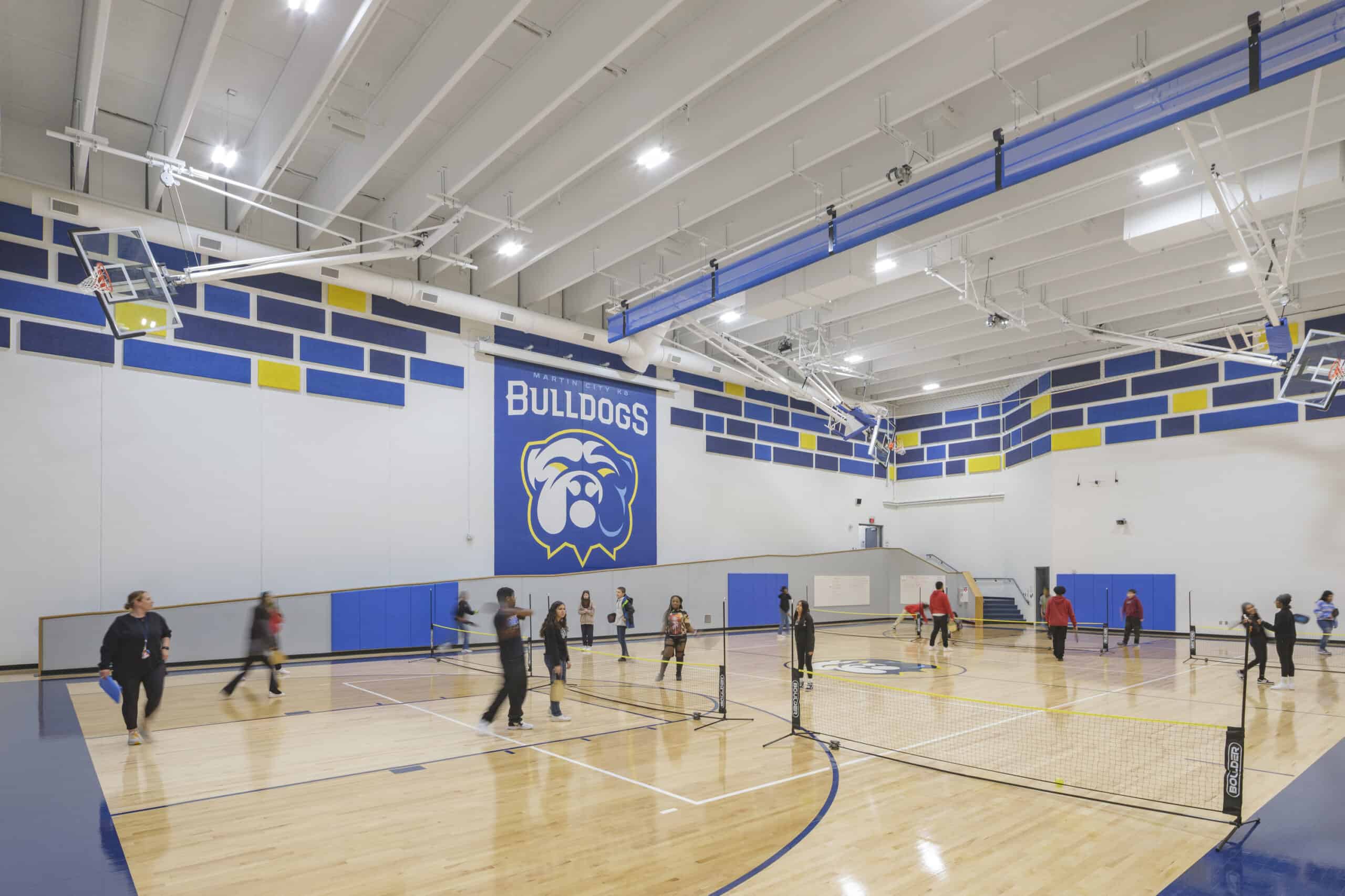 Martin City K-8 School is home to students from kindergarten through eighth grade. Prior to this 20,081-square-foot addition and renovation, all students shared one small gym. The addition of a new gymnasium better accommodates the wide range of learning needs and allowed the existing gym to be converted into an elementary student gym and band practice room.