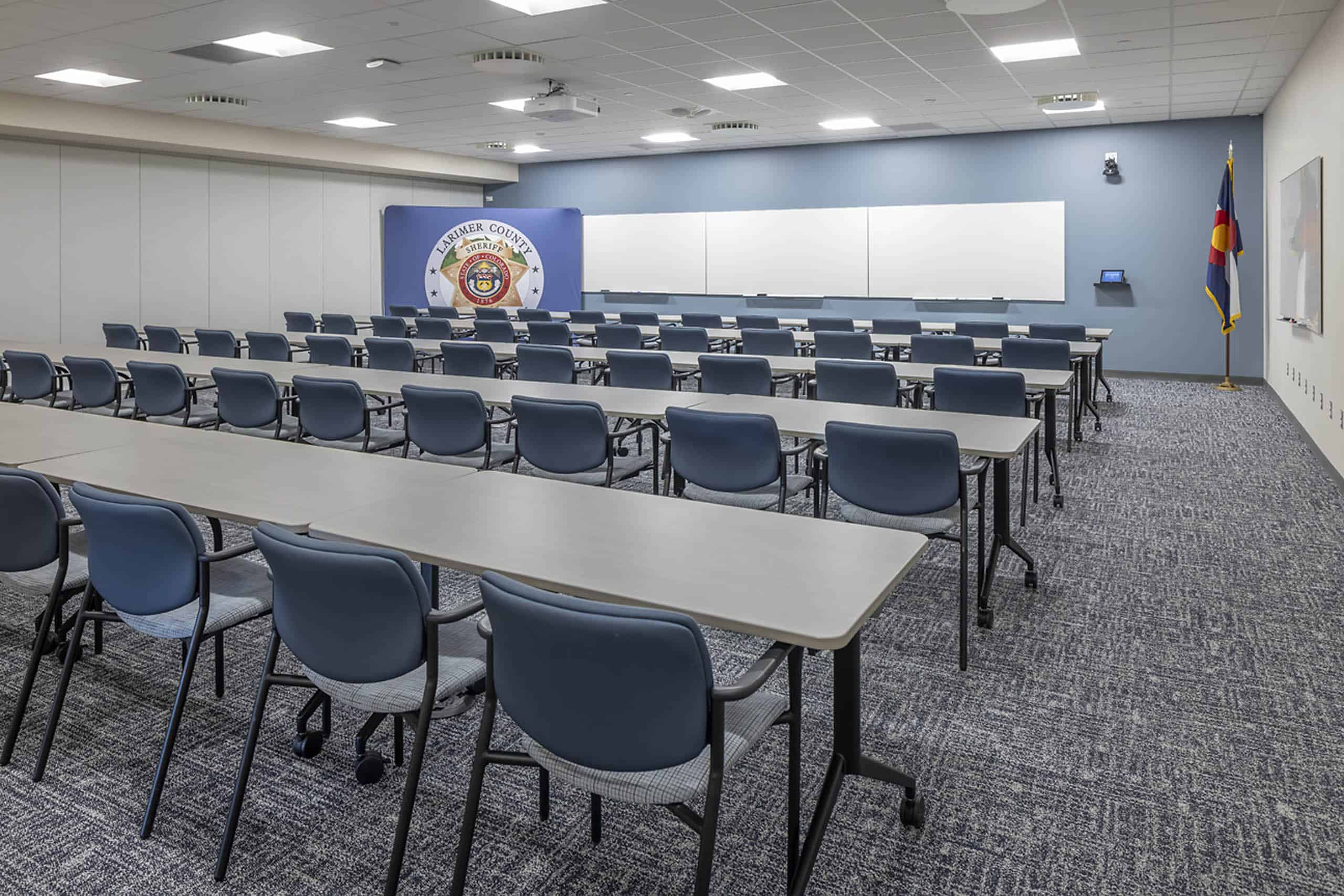 This project is a multi-phase, 137,719-square-foot restorative justice project consisting of an expansion and renovation to the existing jail and accompanying facilities, all taking place within an occupied and operational correctional campus. Included is a new kitchen, laundry room, loading dock, central utility plant, 3-story dormitory-style housing tower, 2-story booking facility, officer training rooms, break room, and locker rooms. The modifications also provided much needed upgrades to campus technology and security systems. Additionally, the new housing tower features centralized medical resources and promotes the intentional use of natural light to all three floors. The housing tower hosts various dwelling styles for the occupants including those with needs surrounding mental health or substance misuse. The new booking facility features a grand staircase that has been connected to the existing Sheriff’s Office building, providing the multidisciplinary campus a physical and metaphorical bridge between the Larimer County Sheriff’s Administration Office and the Larimer County Jail.