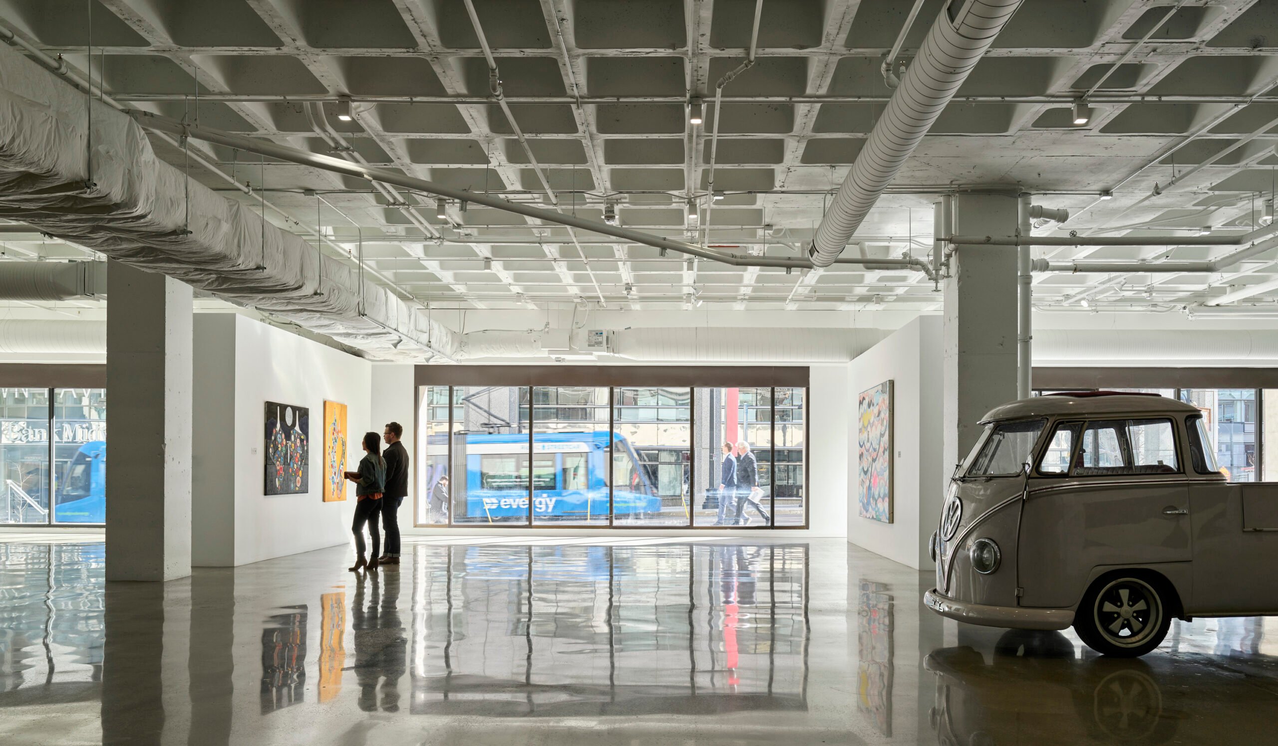 JE Dunn completed a 121,269-square-foot office building renovation. The project included a remodel of the two-story lobby, replacement of all building roofs, new exterior glazing, skylight replacement, and elevator modernization of nine cars.