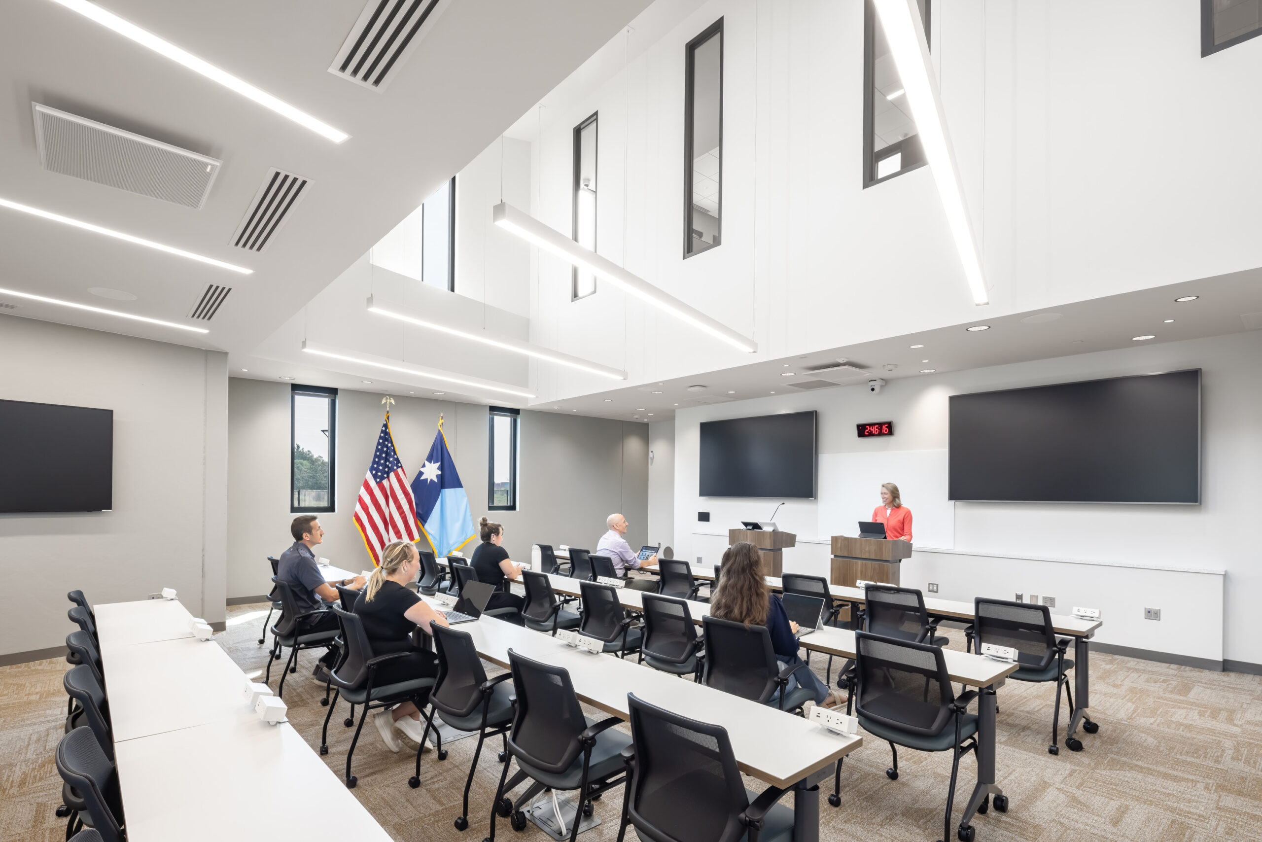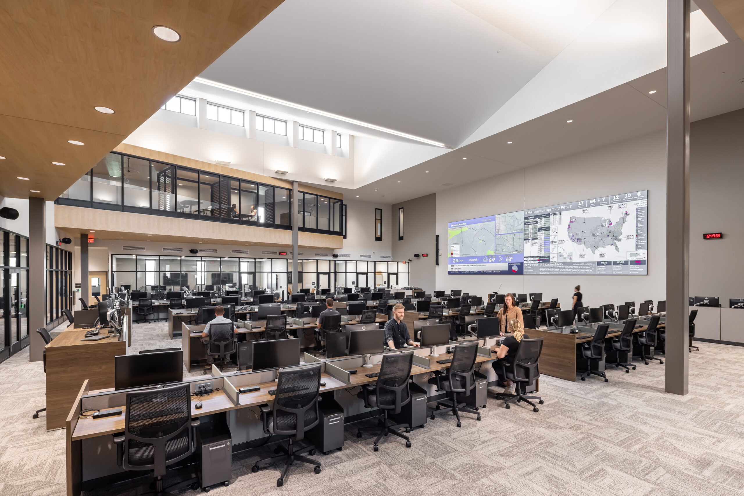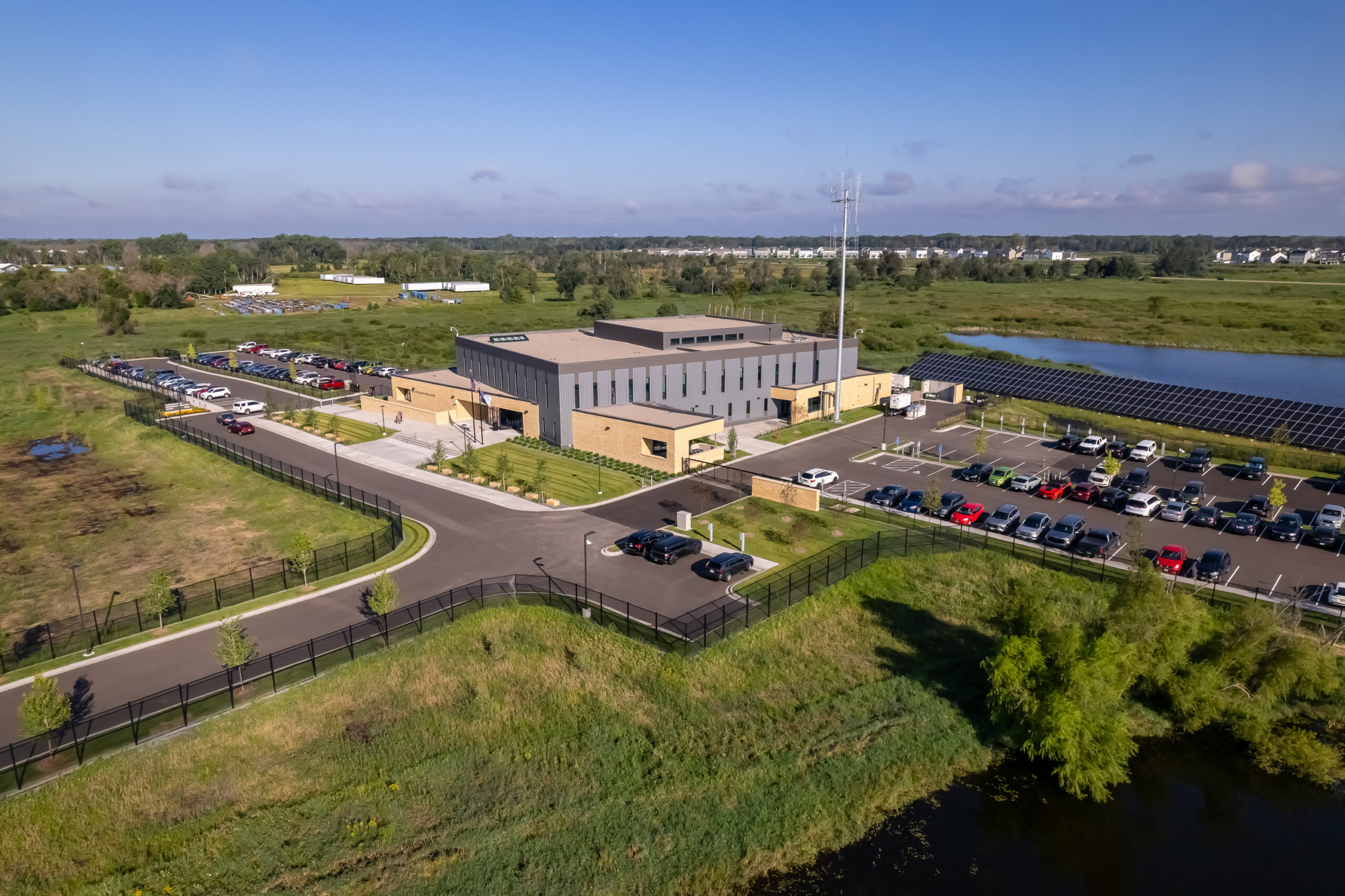The project incorporates a wide range of advanced systems and infrastructure to support both daily operations and large‑scale emergency response. Key features include Darcy geothermal wells, a photovoltaic (PV) array, an ICC 500‑rated storm shelter, a monopole radio tower, and a 20’ x 30’ video wall. Comprehensive integrated security and low‑voltage systems further enhance situational awareness and operational readiness.