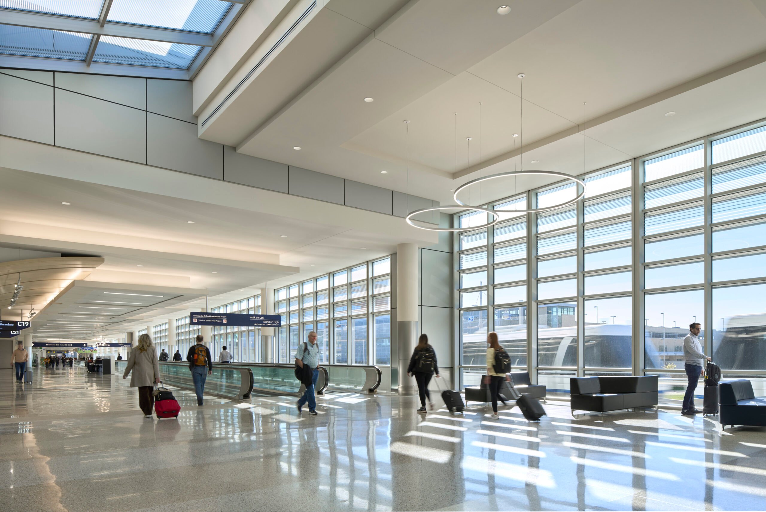 MSP’s Airport Modernization Program (AMP) was the most significant interior refresh of Terminal 1’s concourses since the terminal opened in 1962. Spanning six concourses, the project transformed heavily traveled spaces with brighter lighting, modern finishes, updated technology, and a more cohesive, welcoming design that enhanced both comfort and efficiency for travelers. The program delivered extensive improvements to 75 Delta Airlines gates. Travelers are now benefiting from new seating with built in power, redesigned gate podiums, upgraded carpeting, modernized information screens, and refreshed Delta branding aligned with the airline’s standards at other major hubs. Construction occurred in phases to keep Terminal 1 fully operational with most construction taking place overnight. The completed project brings a more intuitive, comfortable, and efficient Terminal 1 experience—delivering a refreshed environment designed to meet the needs of today’s travelers and support the airport’s future growth.