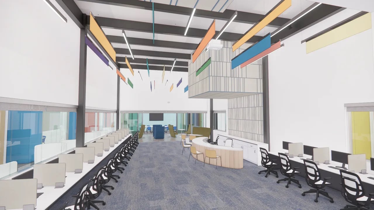 The second floor focuses on health and human services programs, including nursing, medical assisting, social services, and other community-focused careers. Purpose-built simulation labs, classrooms, and collaboration spaces will strengthen the pipeline of healthcare and social service professionals as regional demand continues to grow.