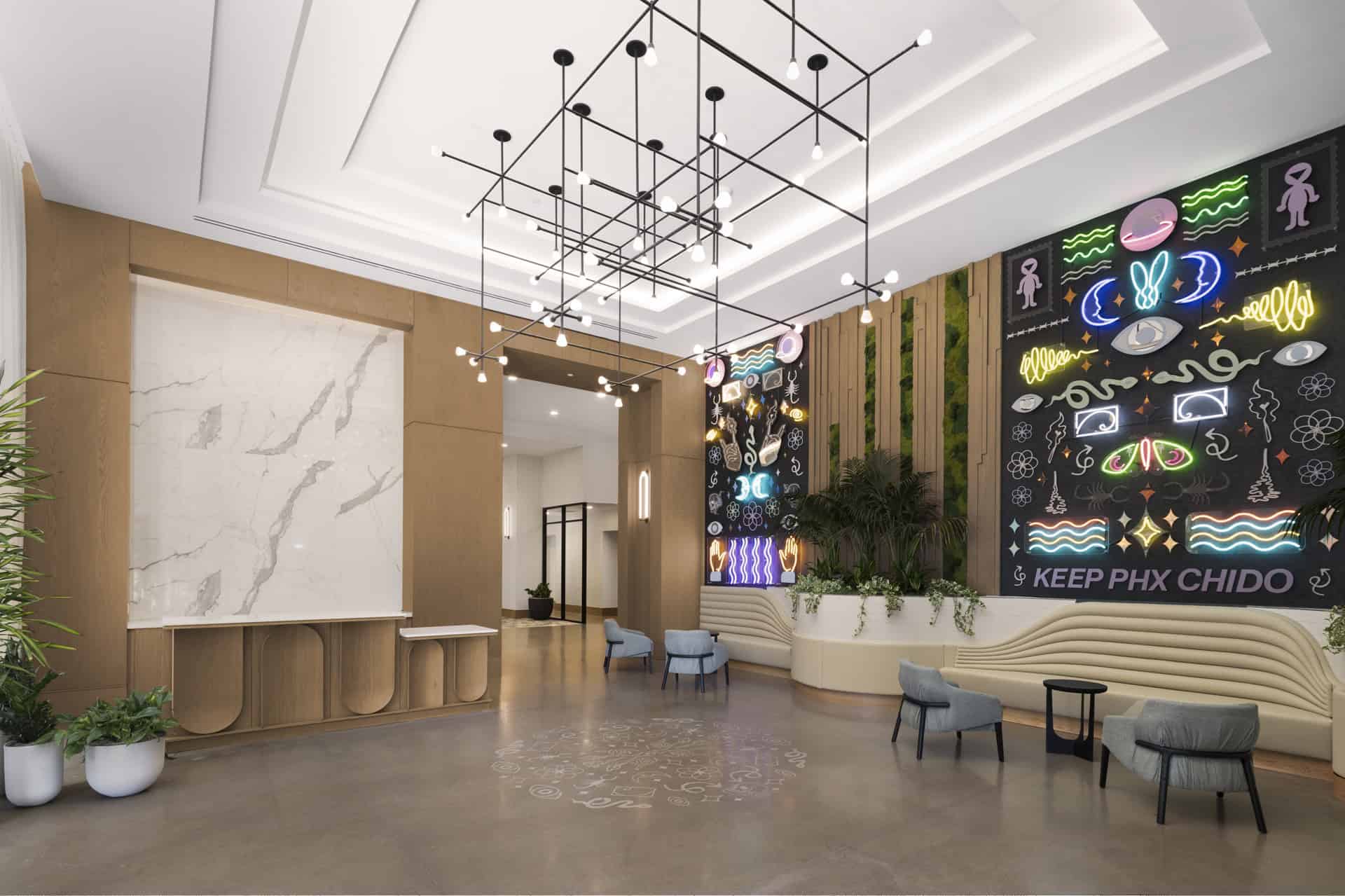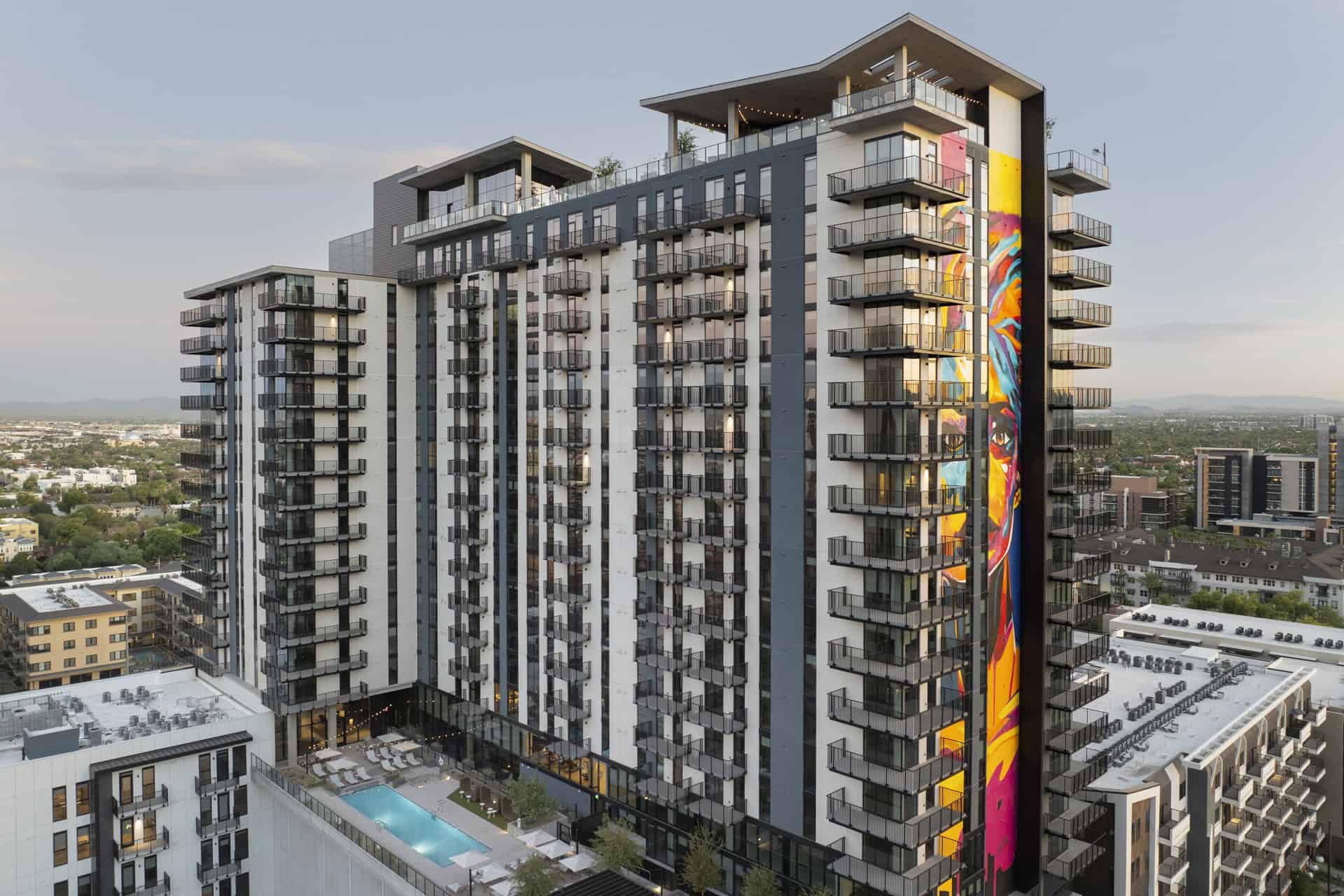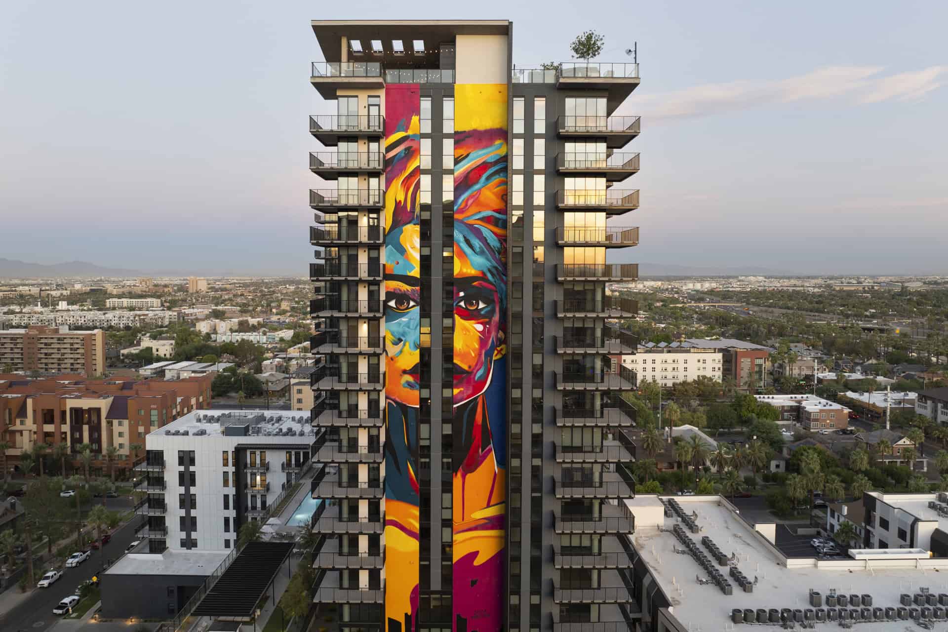 One of the building’s most striking features is the large-scale mural by local artist Leila Parnian, the tallest in Arizona, which further cements the tower’s place within the cultural fabric of Roosevelt Row.