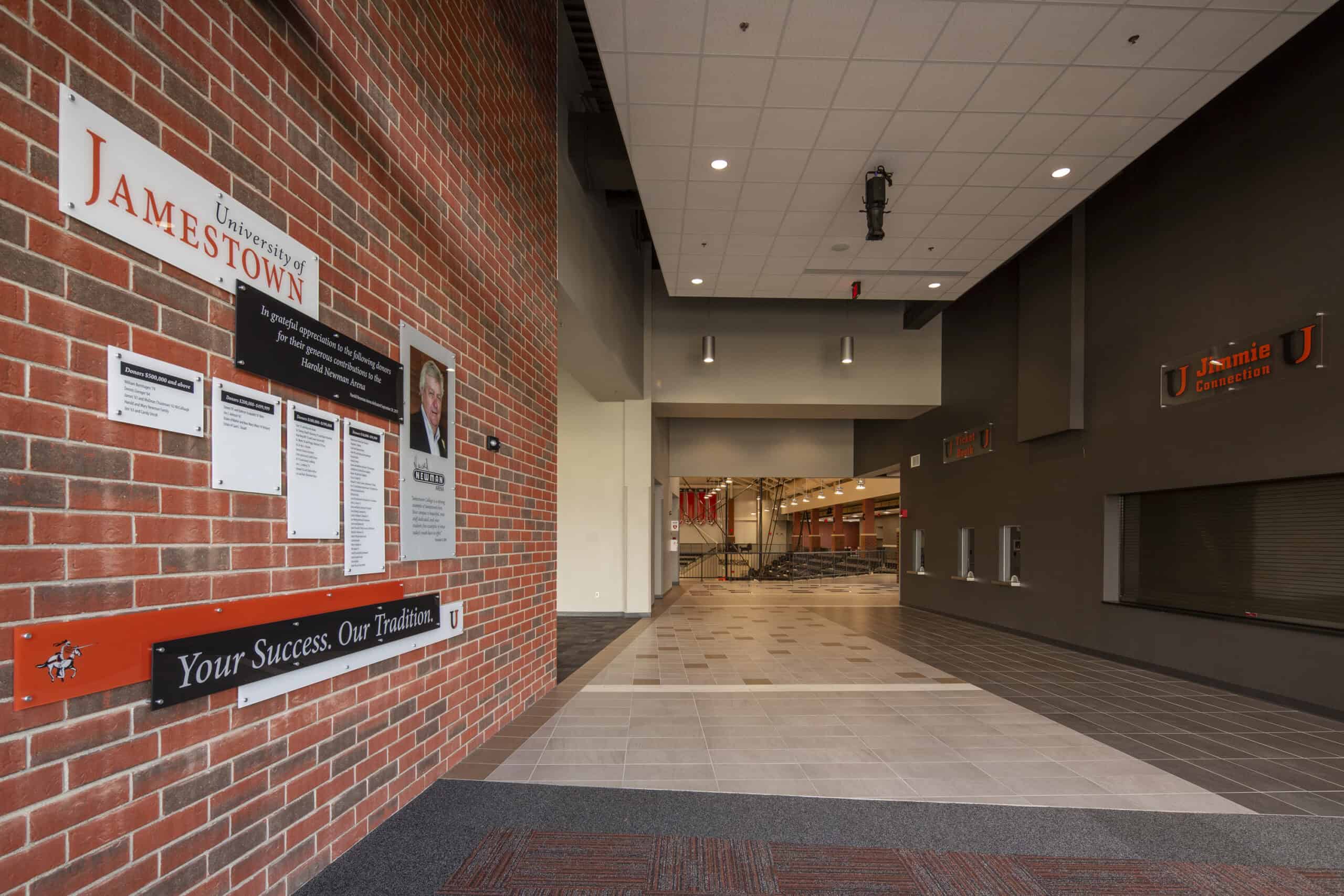 The Harold Newman Arena is a significant landmark at the University of Jamestown. With a personality all its own, this arena is fully equipped with a bell tower that is rung following each home athletic win. This 60,000-square-foot, 1,715 seat arena, offers a whole new experience for fans, students, faculty and friends.