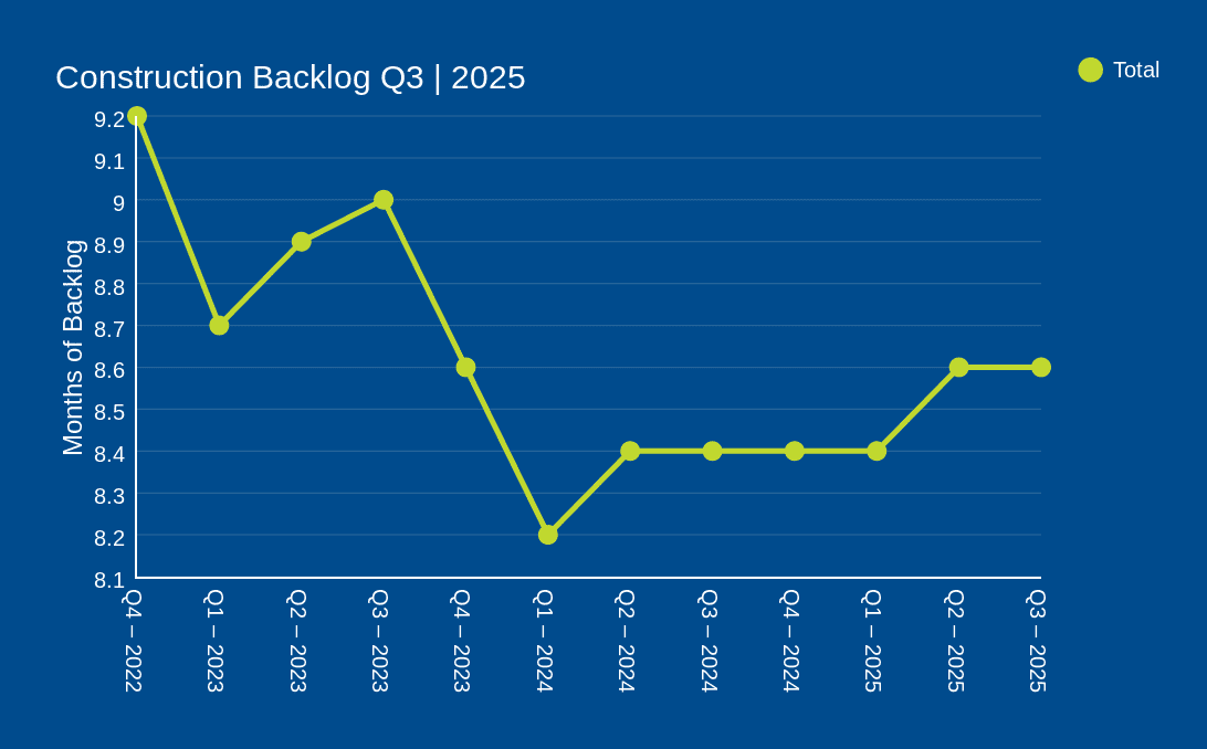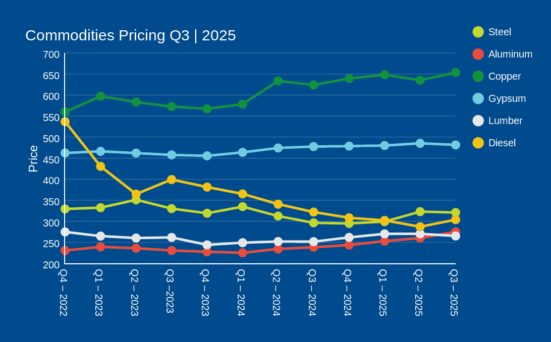 In the construction sector, costs are rising at a historical average rate of 0.73% nationally, down slightly from 0.8% in the second quarter. While price pressures are expected to persist, softer demand and margin compression have helped limit escalation at the project level. Fewer trades are reporting material price increases, and backlogs are beginning to stabilize.